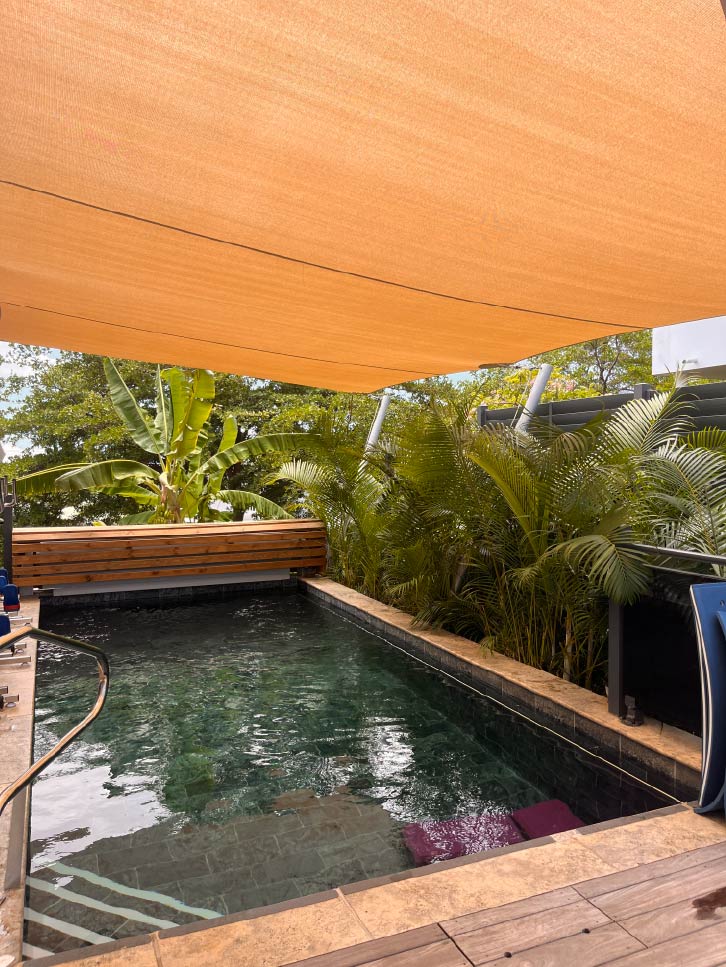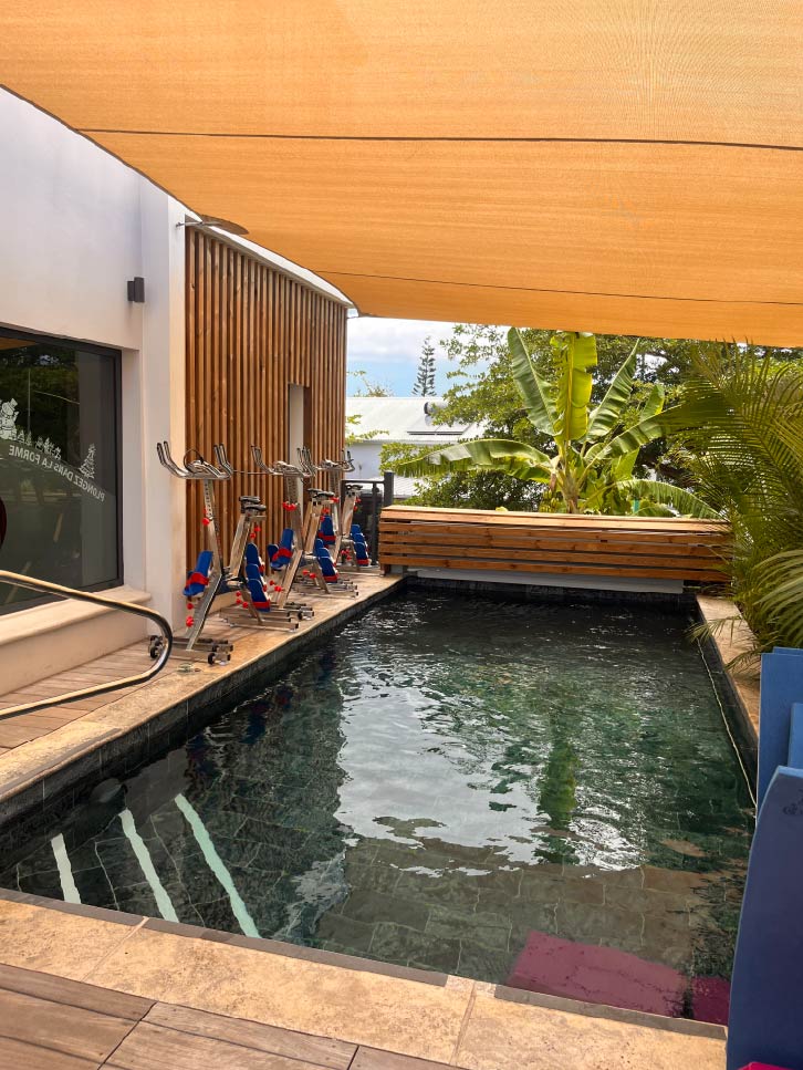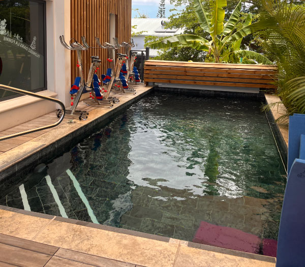 Enfin, nous bénéficions d’un espace de balnéothérapie avec une toile tendue pour vous protégé des UVs maintenue à une température d’environ 30°.