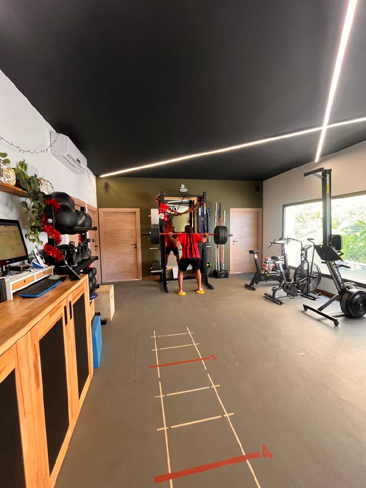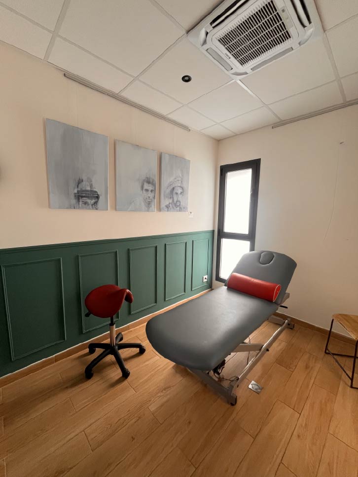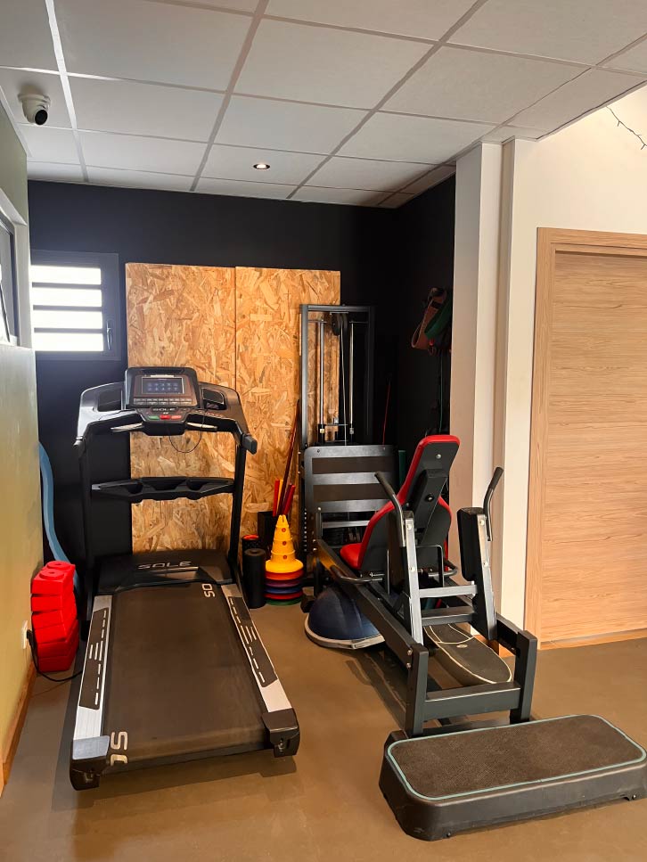 Nous disposons également d’un large plateau technique composé de matériel varié (leg press, assault bike, bikerg, rameur, rack à squat, barres olympiques, tapis de course, élastiques, kettlebells, dumbells, plyobox etc..) afin de pouvoir y effectuer les exercices de rééducation que le masseur-kinésithérapeute vous fera effectuer.